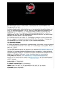 Recruitment Pack September 2021 Teacher of English Maternity Cover
