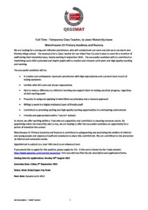 Recruitment Pack Maternity Cover KS2 teacher June 2021